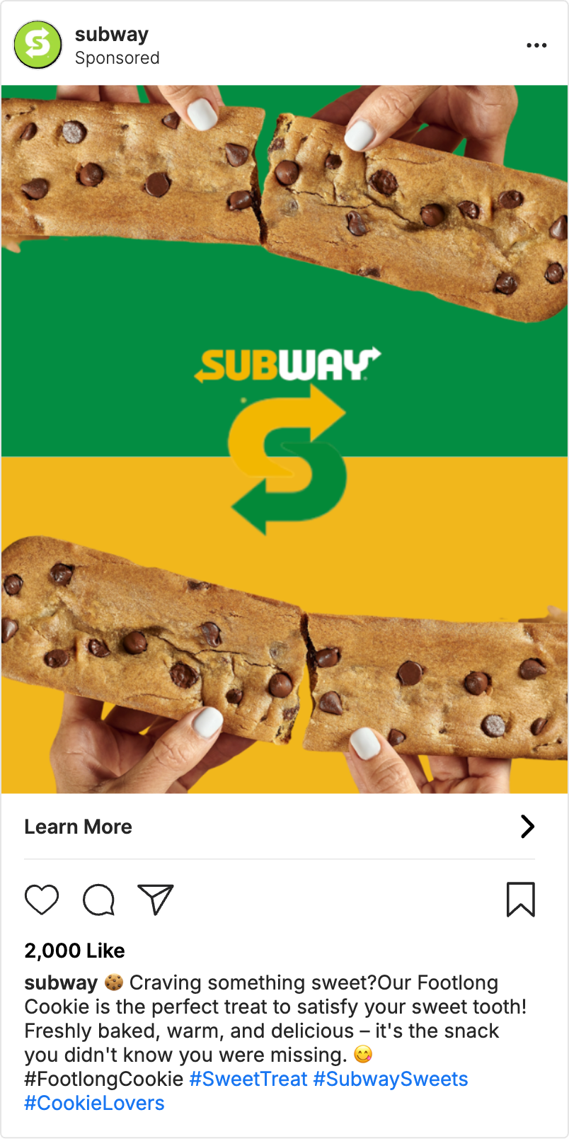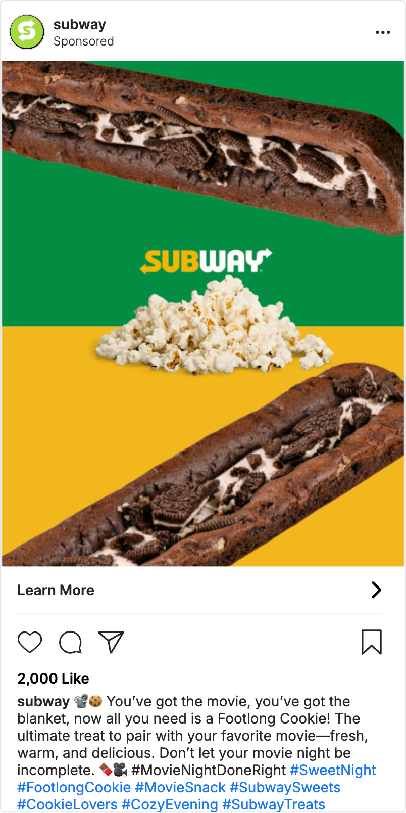 There’s no better way to end a cozy evening than with the warm, comforting taste of Subway’s Footlong Cookie.